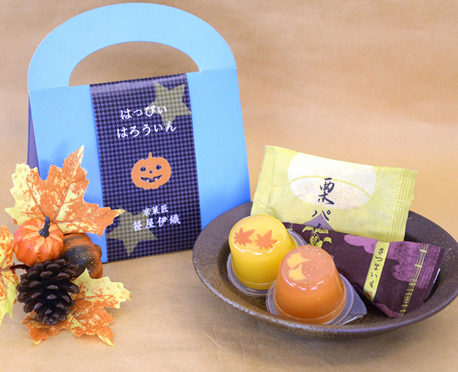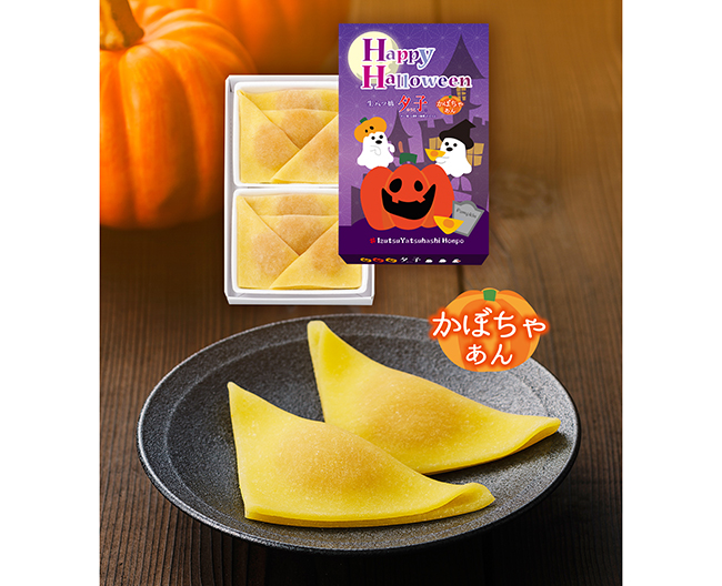 独自の配合でマイルドに仕上げた「かぼちゃあん」を生八ッ橋でやさしく包んだ「夕子」に、ハロウィーンをイメージするデザインで仕上げました。