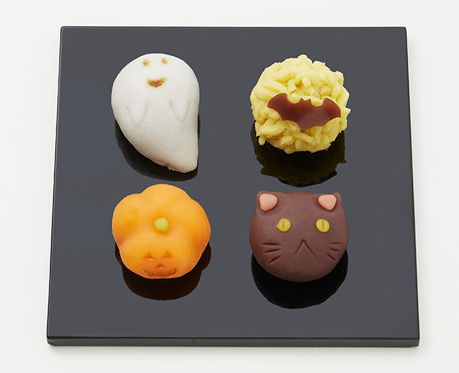 スウィートゴースト(上用)・黒猫(こなし)等、ハロウィーンにちなんだ生菓子を詰め合わせました。