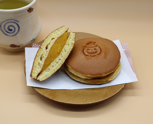 手焼きのカステラ生地で自家製のかぼちゃあんをサンドした、ハロウィーン限定のどらやきです。