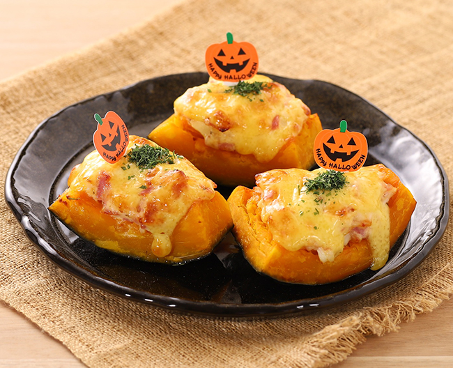 ゴロっと大きいかぼちゃに、ベーコンの塩味とチーズのコクがからみ、甘さを引き立てています。