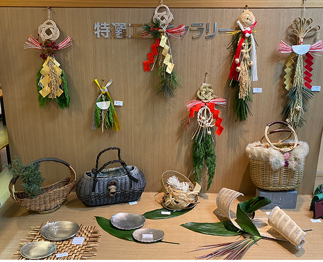 色、形、個性豊かに編みこまれた籐のバッグや盛りかご、それぞれの作品から初冬の季をお楽しみください。