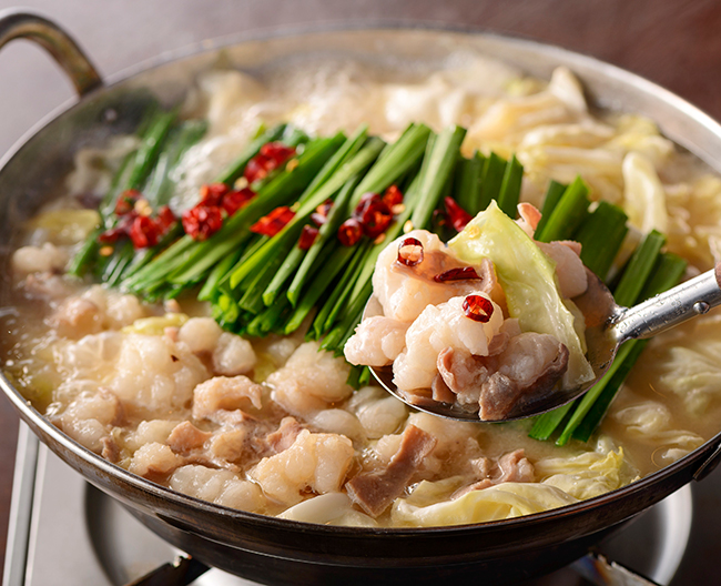 職人こだわりの4種スープと、国産牛ホルモンを使った本格博多もつ鍋です。