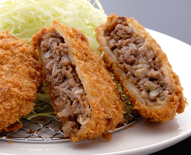 ↑〈近江牛の千成亭〉近江牛メンチカツ(1個) 432円 ほか