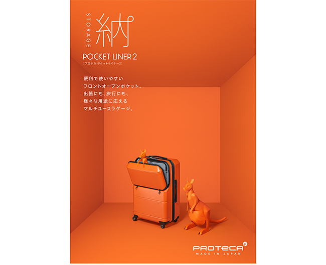 スーツケースを立てたまま開け閉めできるフロントポケットを搭載したポケットライナー2。