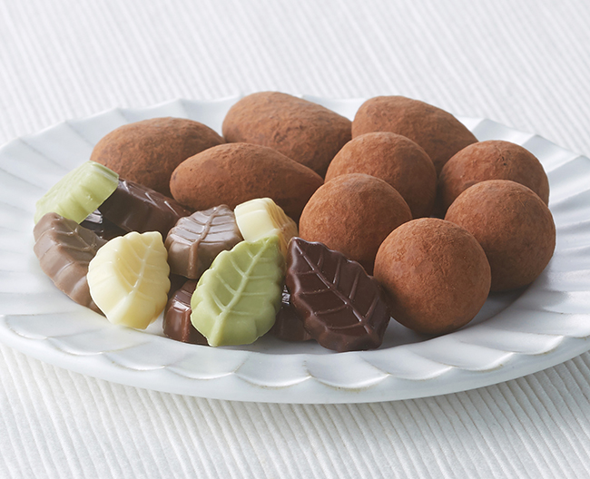 葉っぱの形のチョコレート「リーフメモリー」、ココアミルク、ココアアーモンドが入ったプチアソートを数量限定でご用意いたしました。