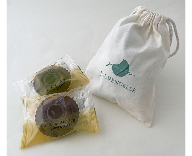 京の宇治抹茶を贅沢に使い、しっとりと焼き上げたケーキに抹茶ガナッシュを合わせた「抹茶ごえん」と、ほうじ茶を贅沢に使った香り高いケーキにほうじ茶のガナッシュを合わせた「ほうじ茶ごえん」をセットにしました。オリジナルの巾着入りです。