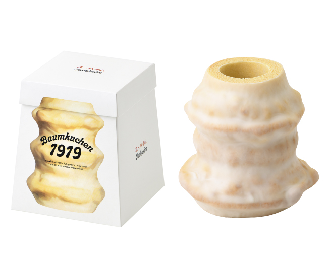 1919年から伝わるレシピと製法で焼きあげた、職人の技が光るバウムクーヘン。芯棒の回転による遠心力によって、ユニークな山型フォルムが生まれました。焼きあがりにアラック酒を吹きかけた、華やかな味わいとしっとりとなめらかな食感が特徴です。