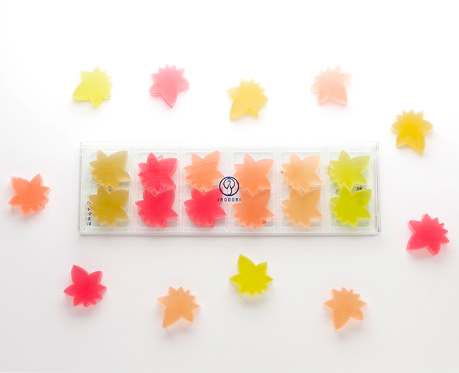 アップルティー・アールグレイ・ダージリン・抹茶・ほうじ茶の風味を集めた、秋を感じられる紅葉の琥珀糖です。