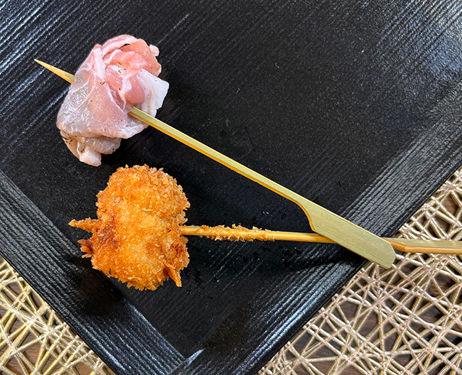 日本三大七味のひとつ、京名物の“伝統の七味唐がらし”を豚肉で巻き串かつにしました。