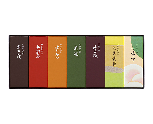 京都に因んだ原材料を使った京都限定小形羊羹2種と、定番5種の詰合せ。