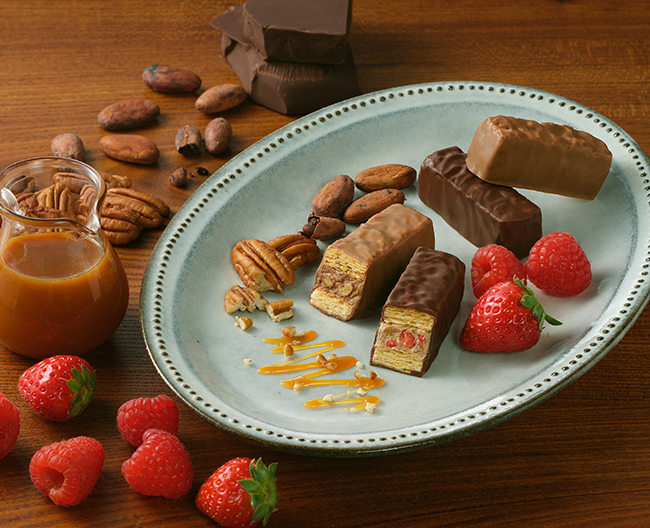 ふんわりキャラメルクリームに、ザクっと食感のキャラメルチップやナッツやベリーを加えた、贅沢な味わいのミルフィーユです。