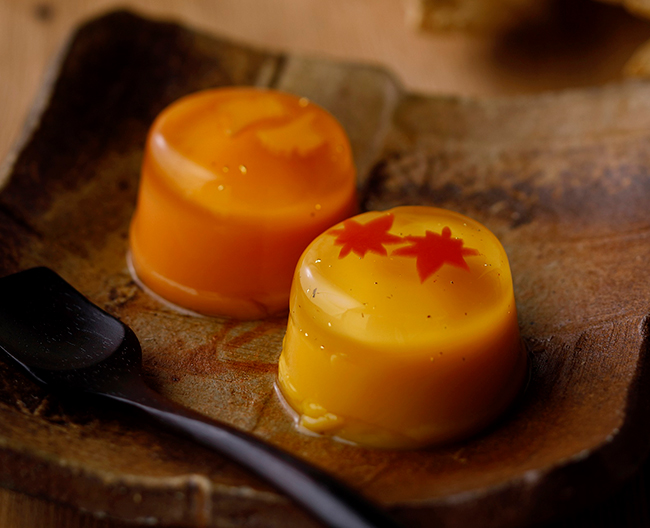色づき始める秋をイメージした果実のムースです。マンゴーとレッドグレープフルーツの2種類のお味です。