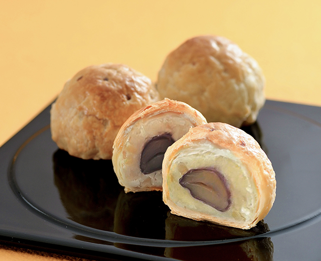 蜜漬けした国産の渋皮栗を特製の栗餡とパイ生地で包み焼き上げました。