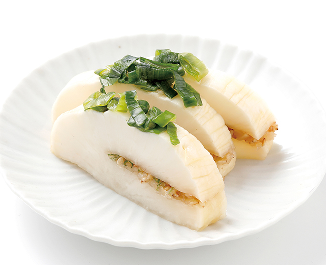 京都地区限定販売。人気のあっさり大根に香味野菜をはさみ、風味の良い九条ねぎを添えた季節限定商品です。