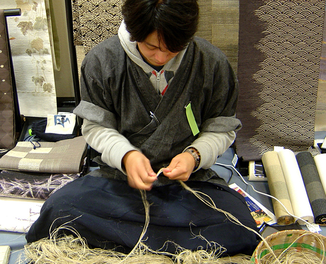 [藤の糸作り実演]
