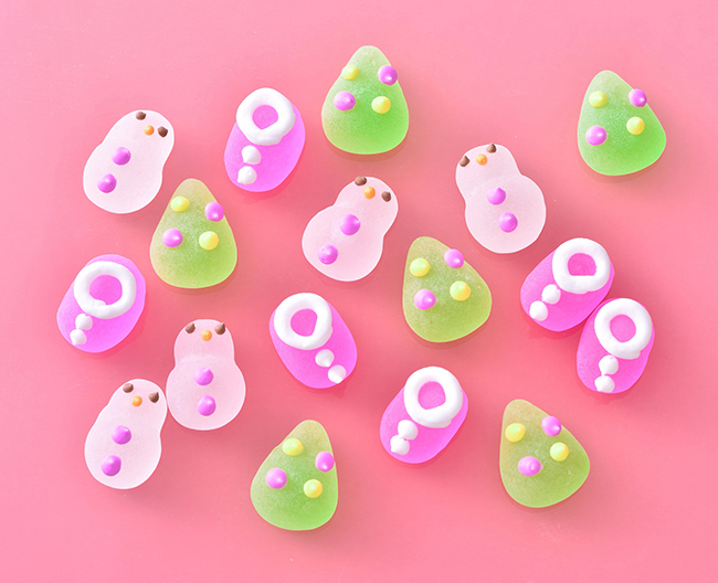 クリスマスを彩るツリーやブーツ、雪だるまを愛らしい糖蜜ボンボンでお作りしました。