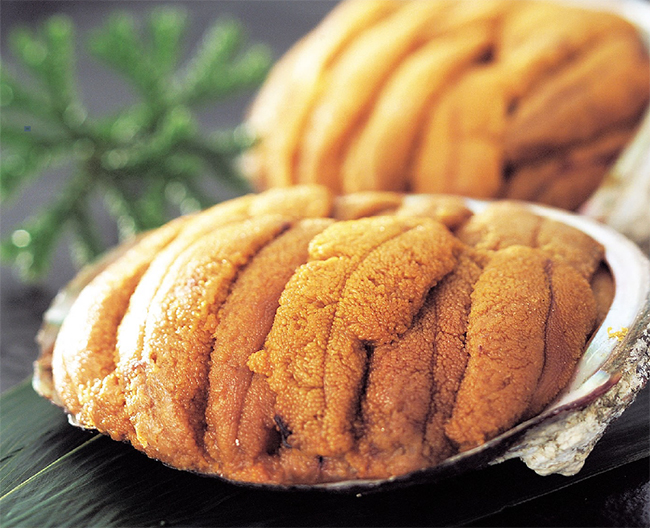 三陸産の生ウニを防腐剤を一切使用せず、アワビの殻に盛り付けて焼いた郷土料理です。