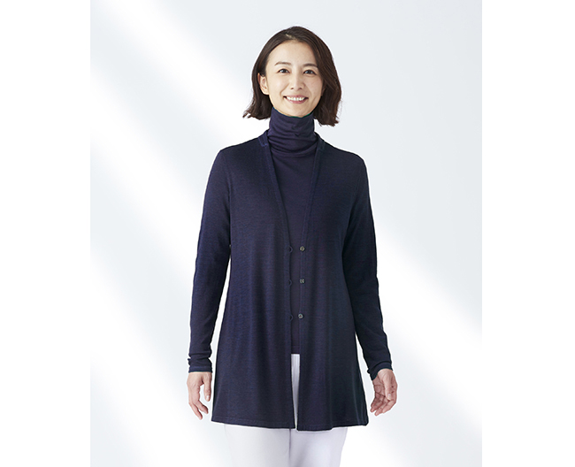 美しい発色と光沢感で、秋の装いを華やかに引き立てる「ウールボイルガーゼ」。上質なメリノウール100%のやわらかな温もりで薄くてもあたたかく、コートの中でもすっきりと着られます。秋から春まで活躍し、しなやかな伸縮性で日々を快適に包み込みます。 また洗濯機洗いが可能でノーアイロンで着用でき、扱いやすさもうれしいニットです。