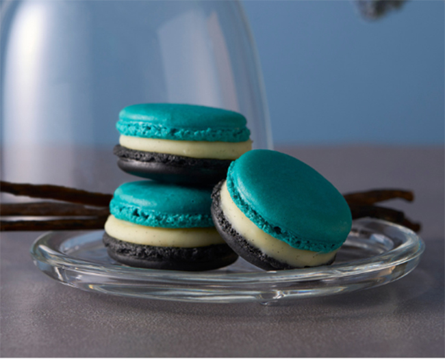 コロンとしたフォルムが可愛い「バニラマカロン」。 中のガナッシュクリームがとろけて、濃厚な味わいとバニラの香りが口いっぱいに広がります。