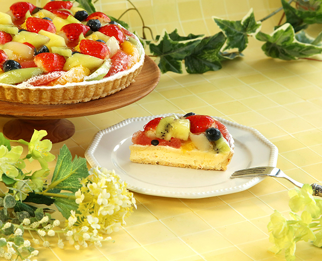 色とりどりのフルーツを使用したア・ラ・カンパーニュの代表的なフルーツタルト。