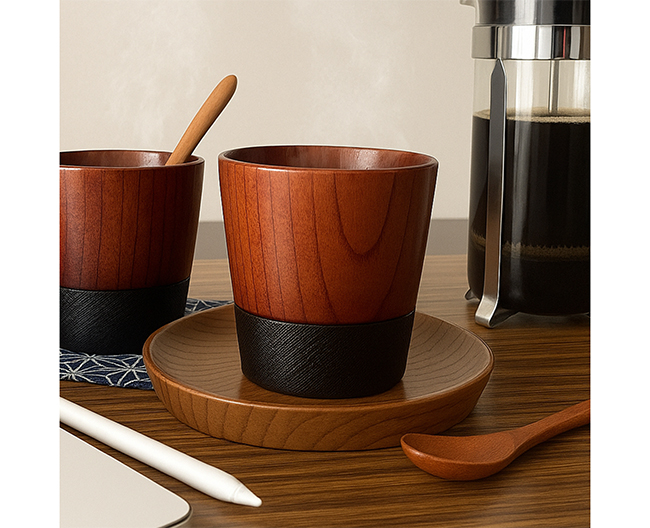 今回は麻布を巻いて漆塗りを施す伝統の技法を用いたマグなどを新作として販売いたします。