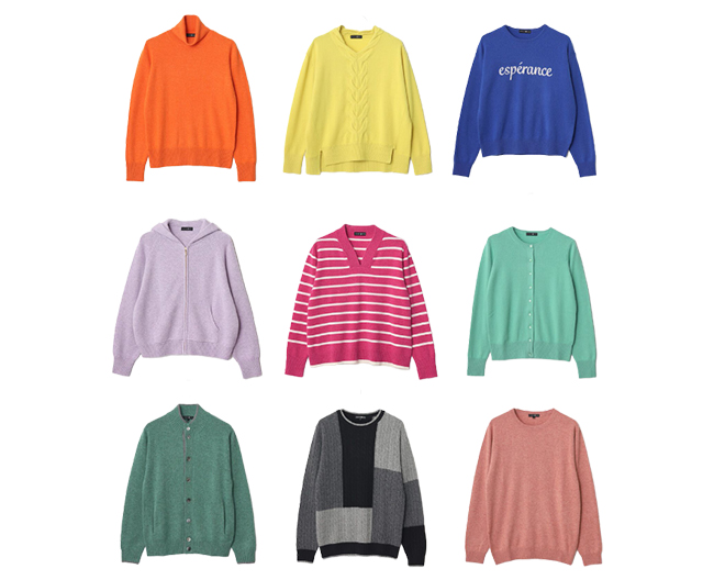 シンプルで着回しやすいデザインのセーターから、ニットアウターまで、ラインアップも充実しています。