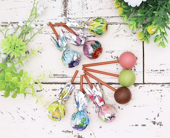 自家製ナッツペーストを抹茶・ミルク・ストロベリーチョコでコーティングした、ロリポップ型チョコレートです。