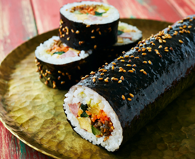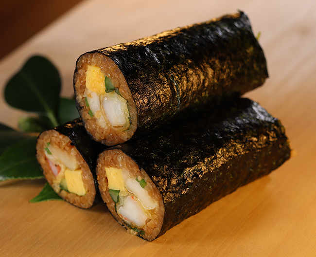 ↑〈融合〉キンパの恵方巻き 1本(約直径4×長さ18cm) 1,650円