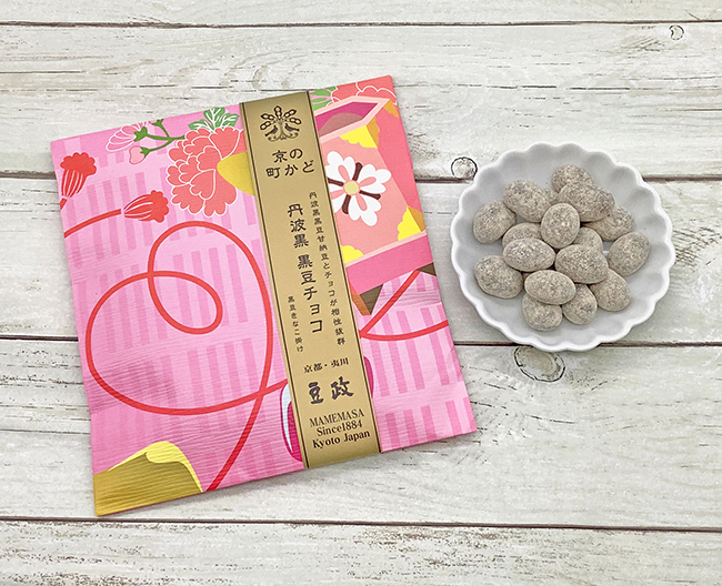 ↑〈豆政〉京の町かど 丹波黒黒豆チョコ(75g) 756円