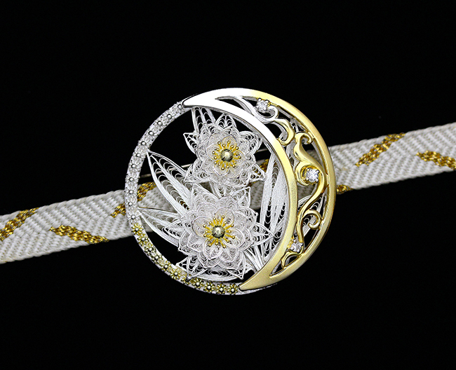 そして、京もの認定工芸士として活躍する伊庭拓也が手掛ける、金属工芸の伝統技術に新しい息吹を感じさせる〈銀峰工房〉金銀細工が登場。