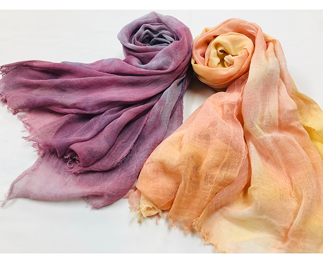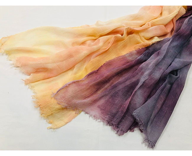 天然の材料を染料とした"新万葉染め"で彩り豊かに職人が1点ずつ丁寧に染め上げたストールです。