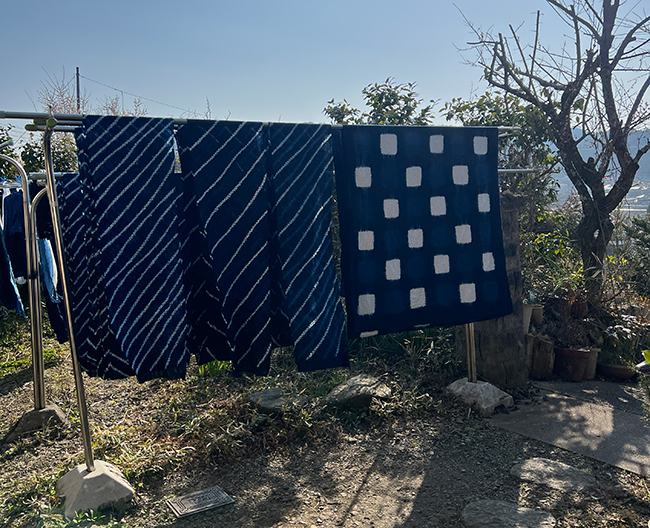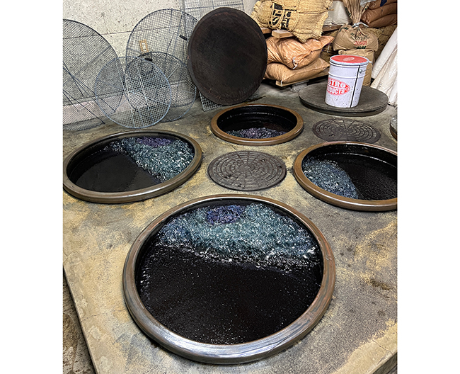 徳島の蒅(すくも)を使い日本古来の技法、天然灰汁発酵建による本藍染めにこだわっています。