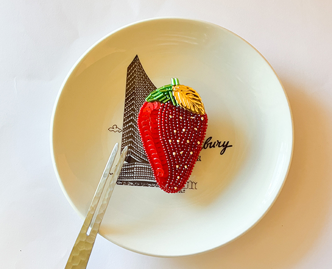「指の間からこぼれ落ちそうに小さく、美しいものを掬い上げる」をコンセプトに、糸、ビーズ、スパンコールなどで形づくるアクセサリー〈アトリエミリュウ〉。