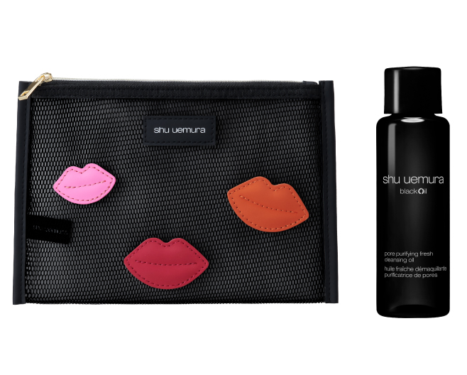 5月1日(金)から、〈シュウ ウエムラ〉カラーメイク商品を含む税込14,300円以上お買上げのお客様、先着100名様に「メッシュポーチ」、「ブラッククレンジングオイル(15mL)」をプレゼント。