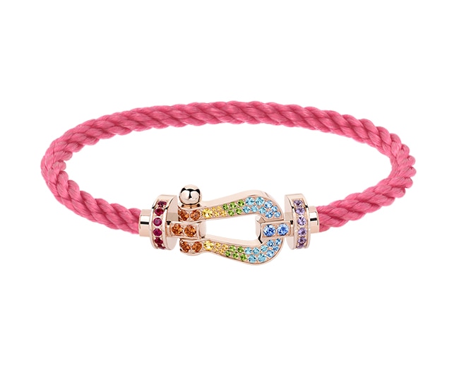 バックル(K18ピンクゴールド ルビー×スペサルタイトガーネット×イエローサファイア×グリーンガーネット×アクアマリン×ブルーサファイア×アメシスト)+ケーブル(ポリエチレンテレフタレート)