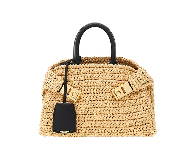 アイコン『HUG』バッグが季節にぴったりのラフィア風素材で登場。ライニングとハンドルがブラックでコントラストを際立たせ、モダンなテイストを加えます。