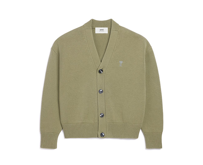 胸元にAmi de Coeur刺しゅうを施し、素材はコットンウールを使用したカーディガン。さらにボクシーフィットにより、季節の羽織り物として、快適にお召しいただけます。