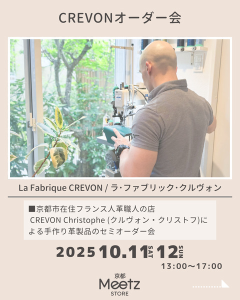 ▽フランス人革職人の CREVON Christophe (クルヴォン・クリストフ)による手作り革製品のセミオーダー会です。
