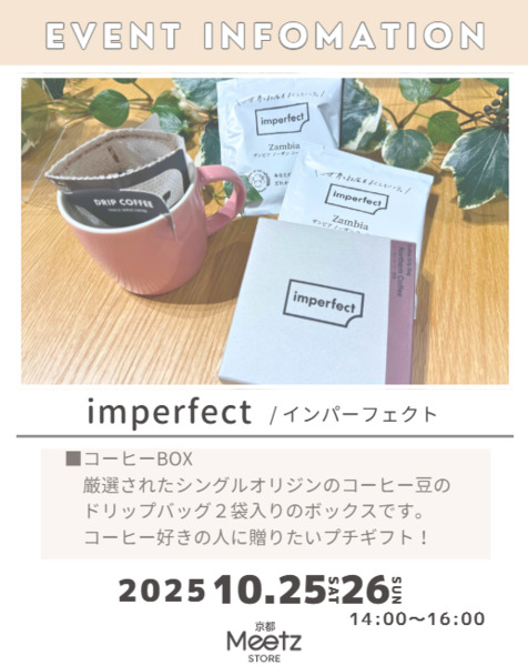 【10月25日(土)・26日(日)】『imperfect(インパーフェクト)』 コーヒー試飲会開催