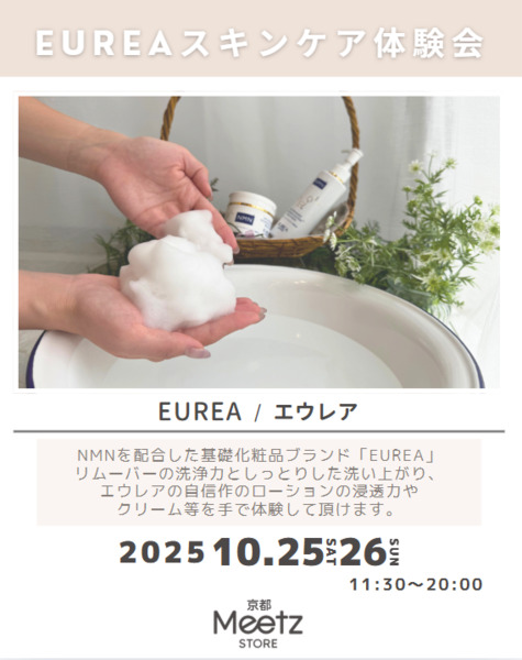 【10月25日(土)・26日(日)】NMN高配合「EUREA」の基礎化粧品 商品お試し会
