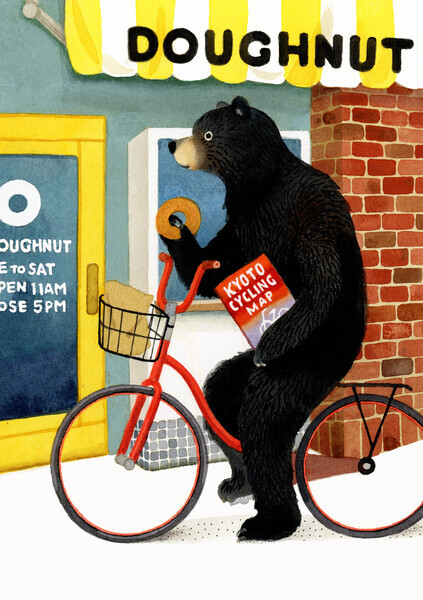 「Stroll around Kyoto」では、京都を散歩しながら名所や銘菓を楽しんでいる動物たちの様子を生き生きと描いています。京都らしい店やモチーフは、京都 蔦屋書店のスタッフが推薦した場所や食べ物を参考に制作され、今回小林が取り組んだZINEの中でスケッチやMAPとなり紹介されています。12種類の作品は、すべて原画とジークレープリントにて販売、年の瀬に合わせてカレンダーもご用意しました。