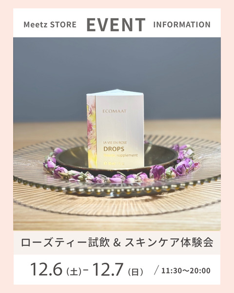 店頭にて、オーガニックのブルガリアンローズを使用した保湿化粧水のお試しのほか、ローズティー等の試飲を実施致します。