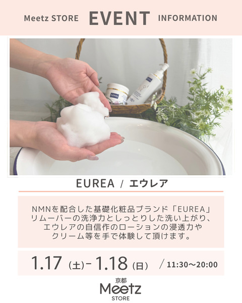 【1月17日(土)18日(日)】NMN高配合「EUREA」の基礎化粧品 商品お試し会