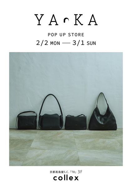 期間:2月2日(月)~3月1日(日) 「日々」になじみ、「日常」にとけこみ、「毎日」を共に過ごす 纏う人と同じ時を共有し人の確たる個性を照らす。 これらをアイテムコンセプトとし、ブラックレザーを基本としたスタイリッシュなデザインが魅力のバッグブランドYArKA(ヤーカ)。デザインのバリエーションは他に類を見ない豊富さで圧巻。