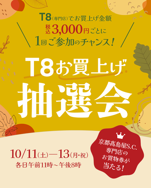 10月11日(土)→13日(月・祝)T8 お買上げ抽選会