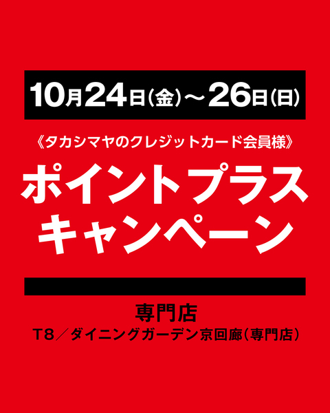 《タカシマヤのクレジットカード会員様》 T8(専門店)・ ダイニングガーデン京回廊(専門店)ポイントプラスキャンペーン