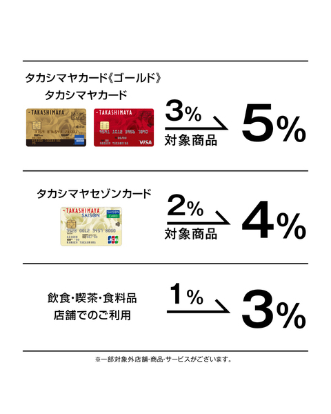 タカシマヤカード《ゴールド》・タカシマヤカード・タカシマヤカード《ビジネスプラチナ》:3%→5%