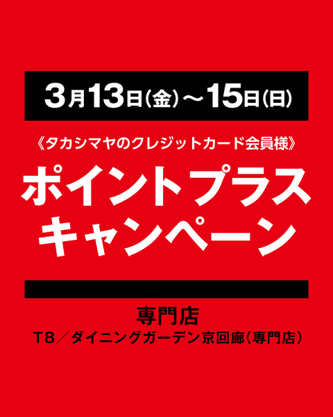 《タカシマヤのクレジットカード会員様》 T8(専門店)・ ダイニングガーデン京回廊(専門店)ポイントプラスキャンペーン