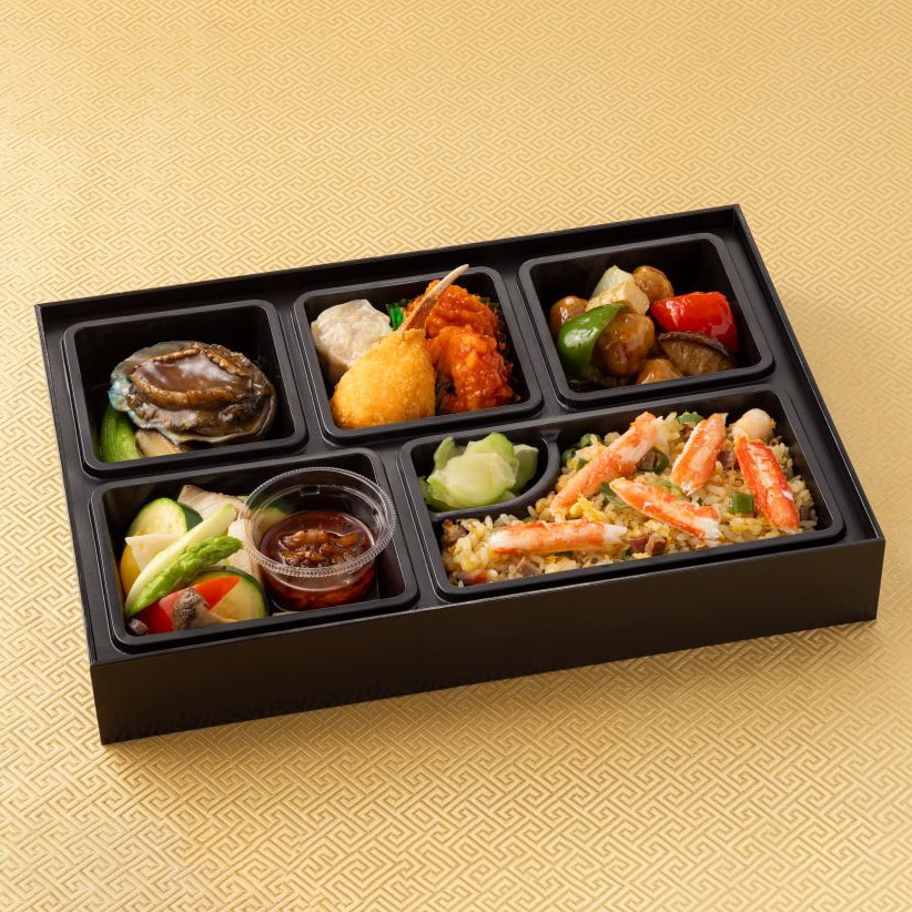 - 鮑、大海老、蟹の爪など特選素材の贅沢なお弁当です。