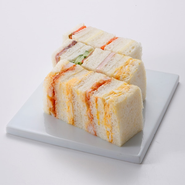 - ミックスサンドウィッチ (和牛ローストビーフ・野菜・ボンレスハム・エッグサラダ)×1本、海老唐揚げ・エッグサラダ×1本、トラウトサーモン・チーズ×1本